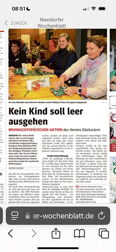 Wir freuen uns über die Mail zu den Weihnachtsgeschenken.