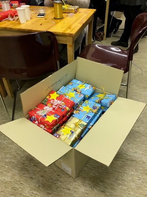 Aber während der Weihnachtsaktion wurden nicht nur Geschenke verpackt; eine Einrichtung erhielt auf eigenen Wunsch keine verpackten Geschenke, sondern erhielt Kleinigkeiten, wie Stifte, Malsachen und Spiele für die Nikolausstiefel.