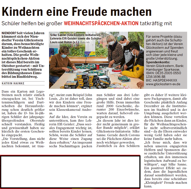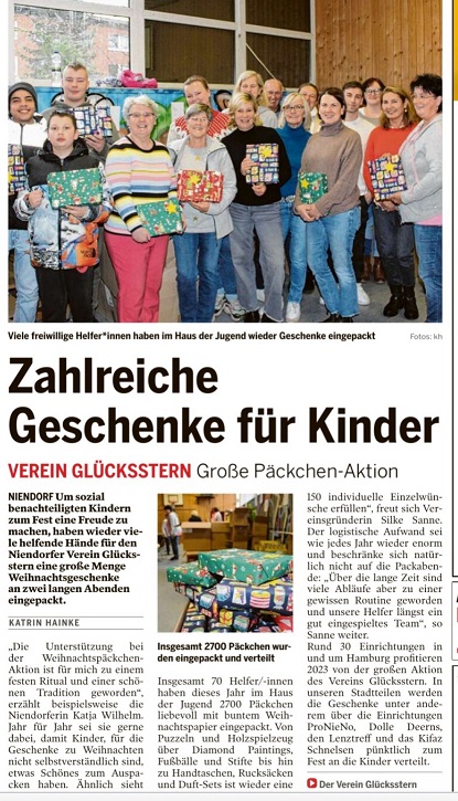 Andererseits waren viele helfende Hände für den Verein im Einsatz. Quer durch Hamburg oder auch darüber hinaus nach Bliestorf und Elmshorn wurden die Päckchen an einzelne Familien verteilt oder in Einrichtungen gebracht.