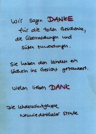 Auch dieses Jahr dürfen wir uns über zahlreiche Dankeskarten freuen. Einige wollen wir hier teilen.