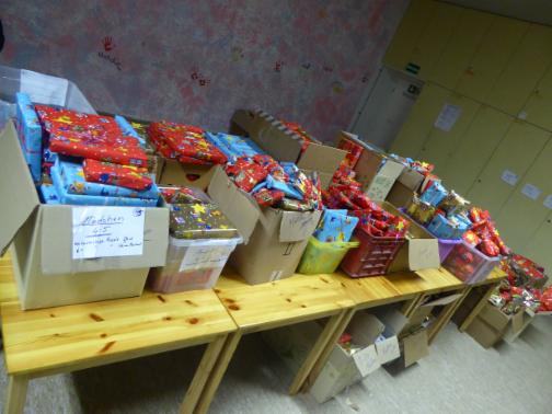 Geschafft ! Auch dieses Jahr wurden wieder über 2.700 Geschenke für Kinder aus sozialschwachen Familien besorgt, verpackt und verteilt. Wir bedanken uns recht herzlich für die vielen Spenden und alle helfenden Hände, die es ermöglicht haben, dass vielen Kindern, die ansonsten mit leeren Händen zu Weihnachten dagestanden hätten, nun ein schönes Fest bevorsteht. Gerade bei den Einzelwünschen, die laut Wunschliste erfüllt wurden, treibt einem die Bescheidenheit der Wünsche oft ein Tränchen ins Auge. Was bei vielen Kindern oft schnell beiseite gelegt wird, sollten sie es unter dem Weihnachtsbaum finden, ist für andere das größte und einzige Geschenk. So standen auch dieses Jahr wieder eine Mütze, Handschuhe oder ähnliches auf den Wunschzetteln. Schön, wenn man diesen Kindern eine Freude bereiten kann. Allein dafür lohnt sich das ganze Engagement.