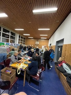 Dieses Jahr hatten wir im Haus der Jugend die tolle Möglichkeit, die Packaktion in der Turnhalle durchführen zu können, was die Platzthematik, die sich durch die mittlerweile hohe Anzahl an Weihnachtspäckchen ergibt, wesentlich entzerrte. Darüber waren wir sehr glücklich und möchten dem Haus der Jugend wieder ein herzliches Dankeschön sagen, da ohne diese Unterstützung die Aktion in dieser Form so gar nicht möglich wäre. So konnten wir wieder an 2 Packabenden in der letzten Novemberwoche mit insgesamt 70 Helferinnen und Helfern 2.700 Weihnachtspäckchen verpacken und für die Kinder und Jugendliche aus sozial schwachen Familien bereitstellen.