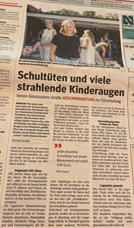 was waren das wieder für schöne Schultüten, Ranzen, etc. Wir und vor allem die Kinder haben sich sehr gefreut. Wir hatten dieses Jahr auch viele Kinder, die eingeschult wurden.
